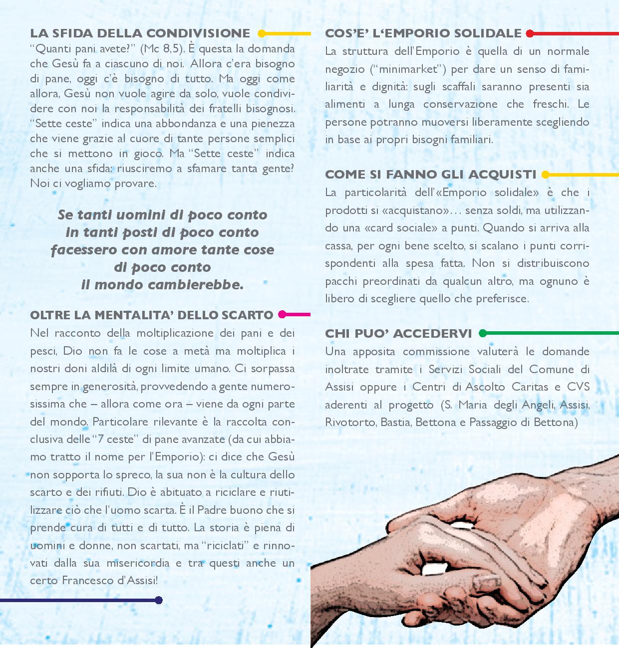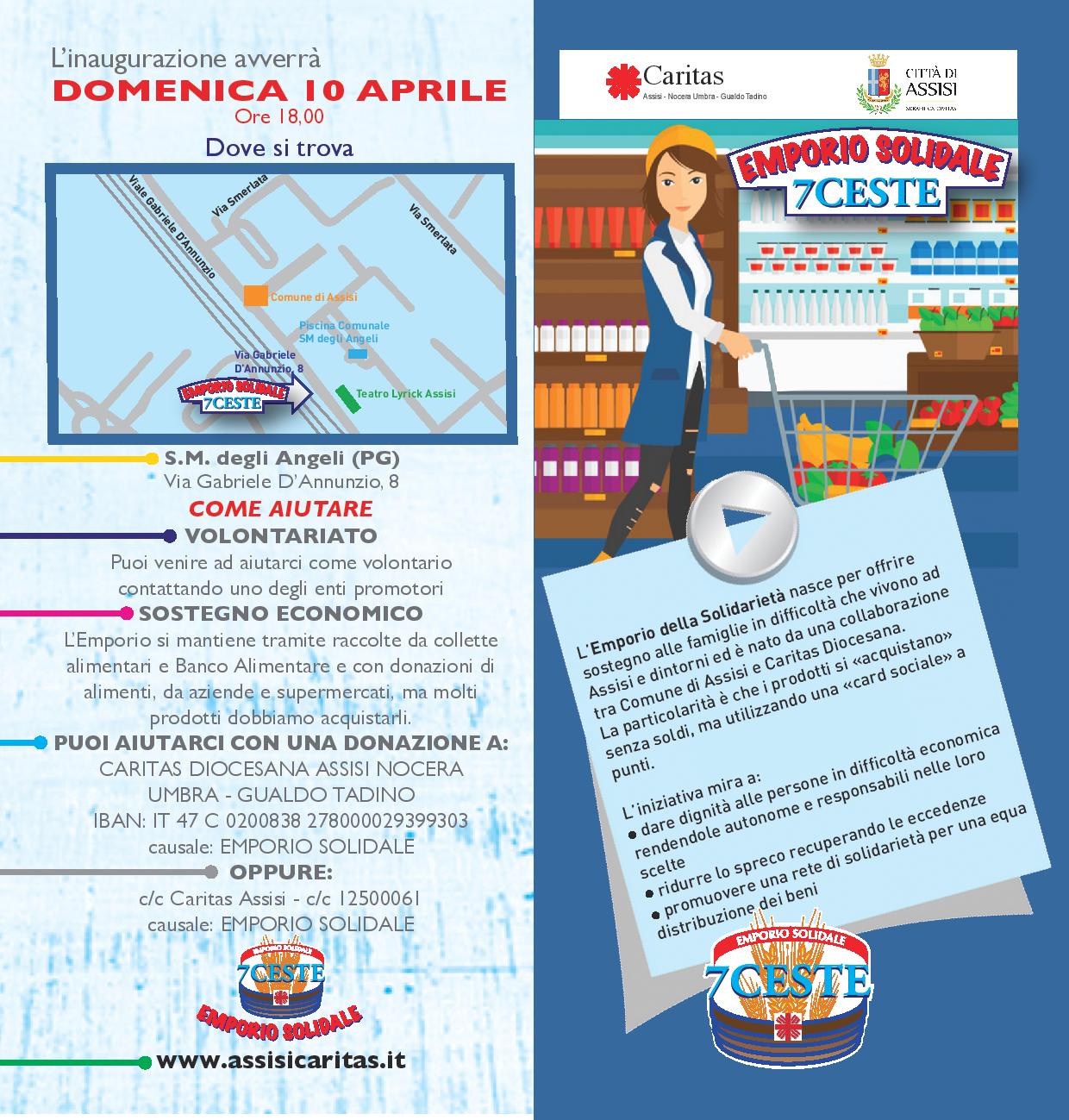 L'Emporio della Solidarietà nasce per offrire sostegno alle famiglie in difficoltà che vivono ad Assisi e dintorni ed è nato da una collaborazione tra Comune di Assisi e Caritas Diocesana. La particolarità è che i prodotti si "acquistano" senza soldi, ma utilizzando una "card sociale" a punti.
