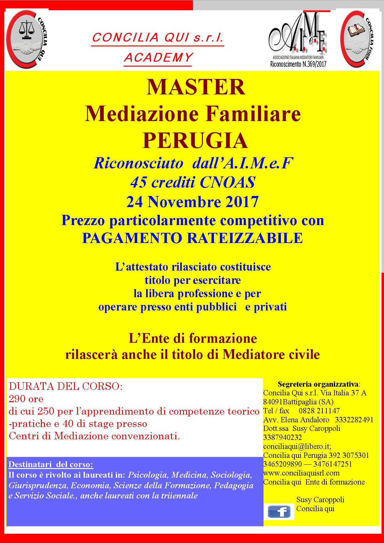 Per informazioni: Concilia qui Perugia - 392 3075301 - 346 5209890 - 347 6147251