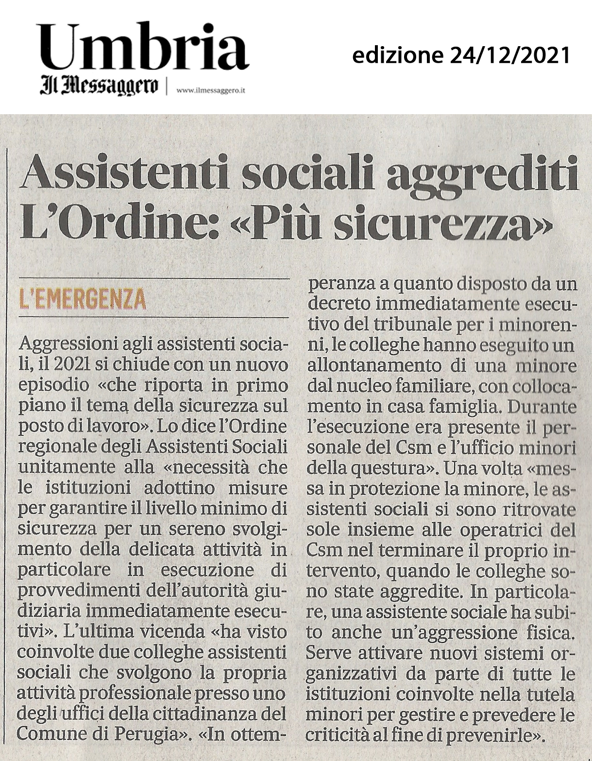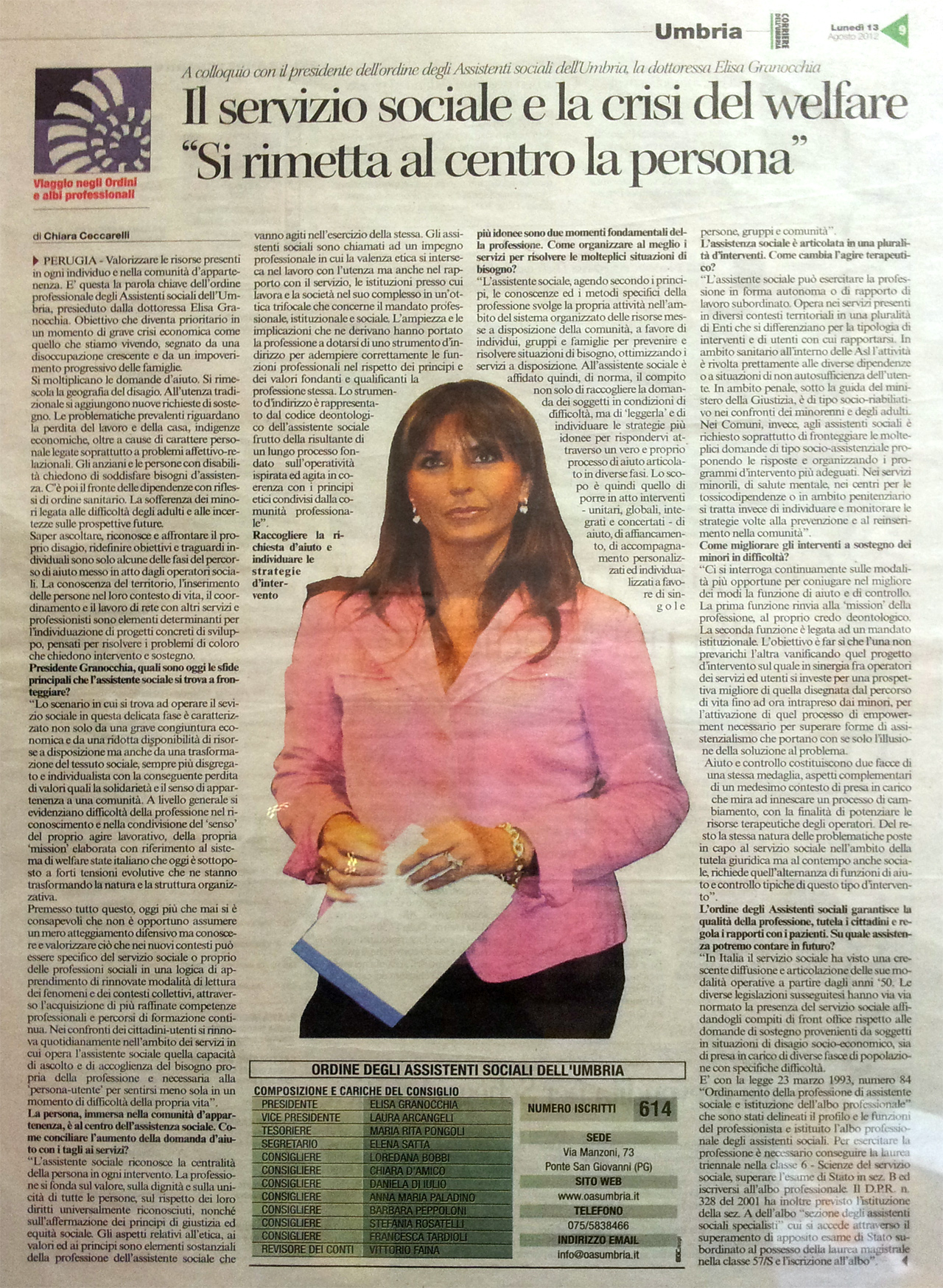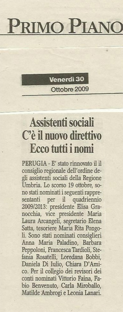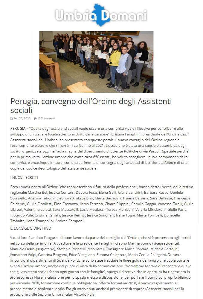 COMUNICATO STAMPA ORDINE ASSISTENTI SOCIALI UMBRIA