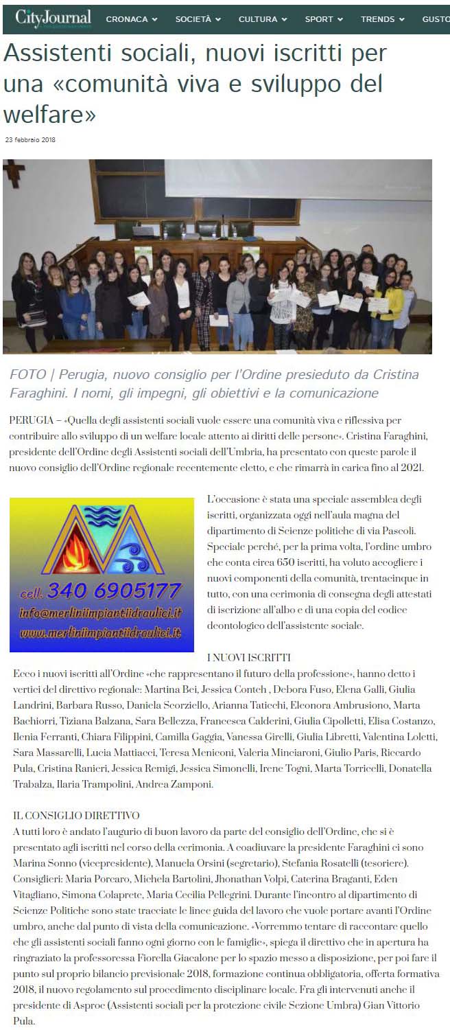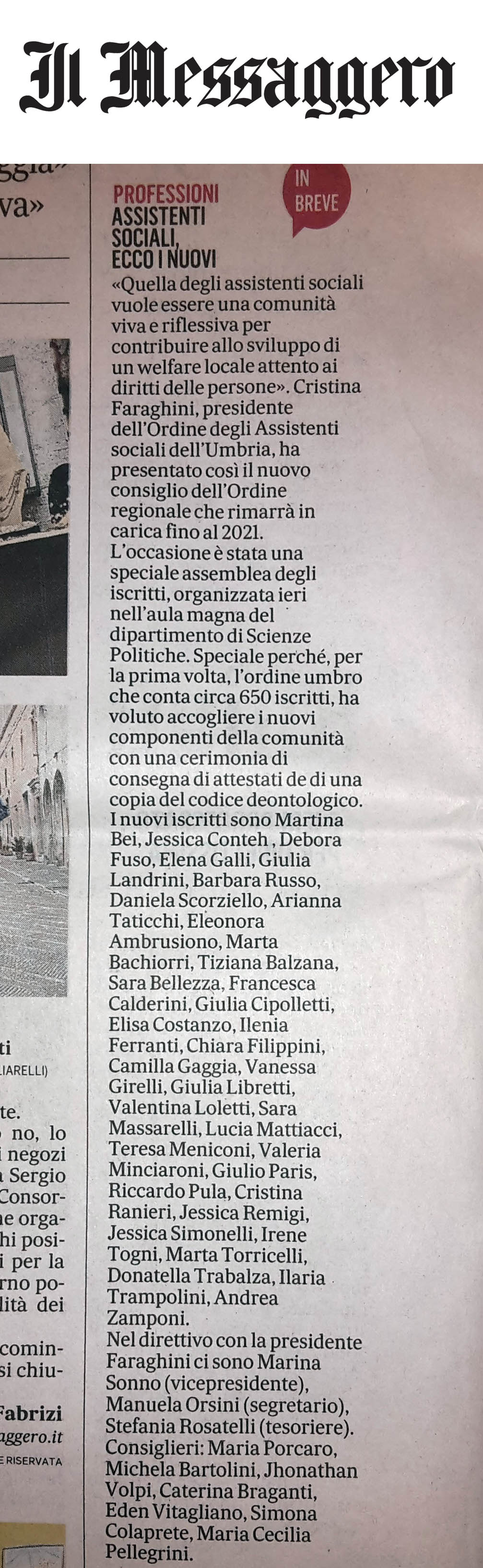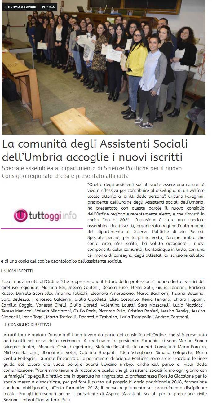 COMUNICATO STAMPA ORDINE ASSISTENTI SOCIALI UMBRIA