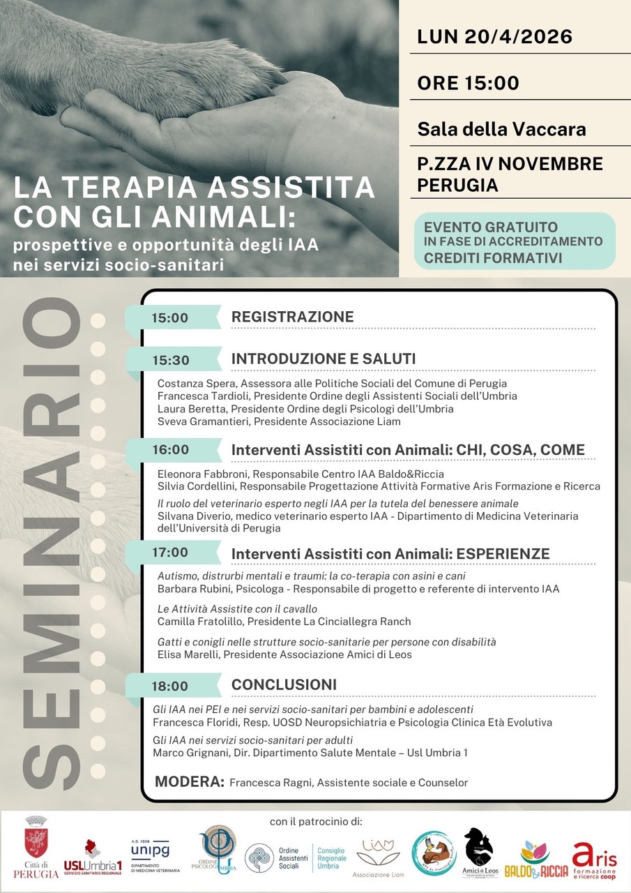 Lunedì 20/04/2026 – Ore 15:00 – Sala della Vaccara P.zza IV Novembre (PG).