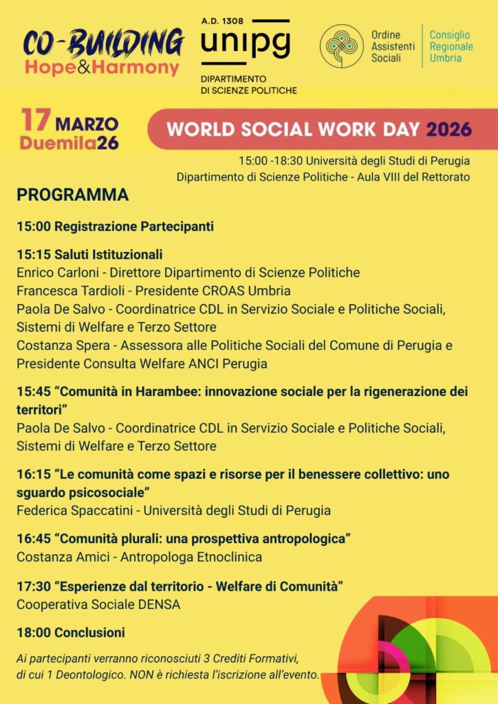 Martedì 17 marzo 2026 dalle ore 15:00 alle 18:30 presso l’Università degli Studi di Perugia, Dipartimento di Scienze Politiche, aula VIII del Rettorato (PG).